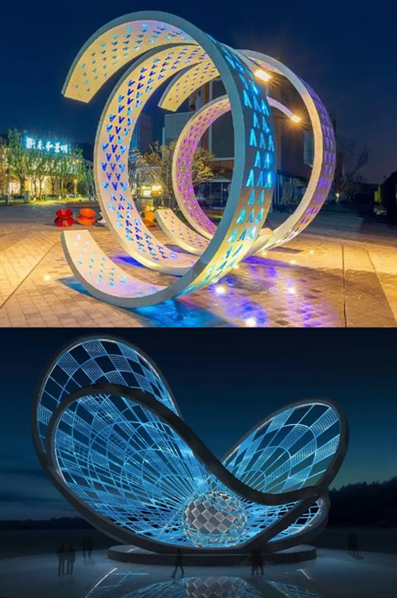 燈光雕塑小品作為藝術品,本身就具有審美價值,由于其造型、色彩、尺度再加上合理布局,本身就是城市公共空間、景區園林一景。運用雕塑小品的裝飾性能夠提高所在地點觀賞價值,滿足人們的審美要求,給人以藝術的享受和美感。