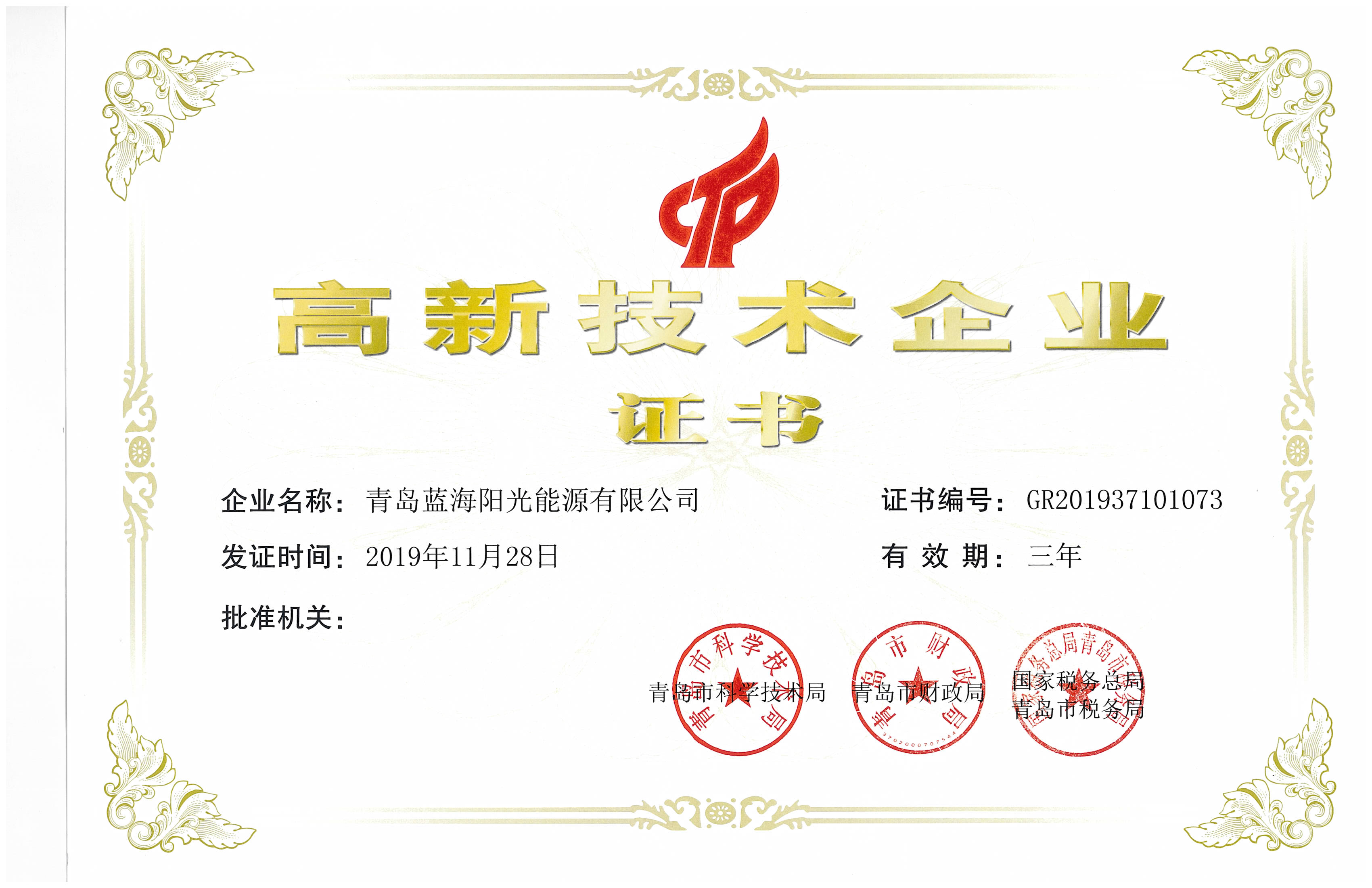 青島藍海陽光能源有限公司七年來,重視并加大了新技術、新產品的研發,并不斷的轉化出豐碩的成果,極大地推動了照明行業的發展。公司具有20多個專利,15個軟件著作權,取得了高新技術企業、專精特新企業、科技型中小企業的稱號。